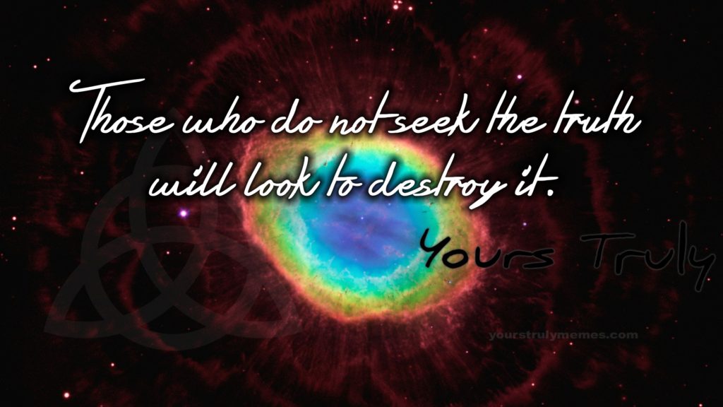 Those who do not seek the truth By Yours TrulyOctober 10, 2018Honor, Human Race, Life, Love, Respect, Truth Those who do not seek the truth will look to destroy it.